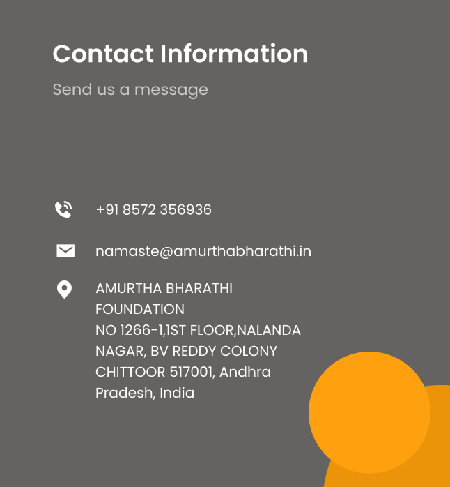 At Amurtha Bharathi, our mission is to nurture and preserve India’s rich heritage and culture while championing accessible education and charitable initiatives. We are committed to distributing knowledge, fostering educational opportunities, and alleviating social inequalities. By emphasizing the importance of mother tongue, providing educational support to underprivileged students, and engaging in charitable endeavors, we strive to empower communities and create a more equitable society.
